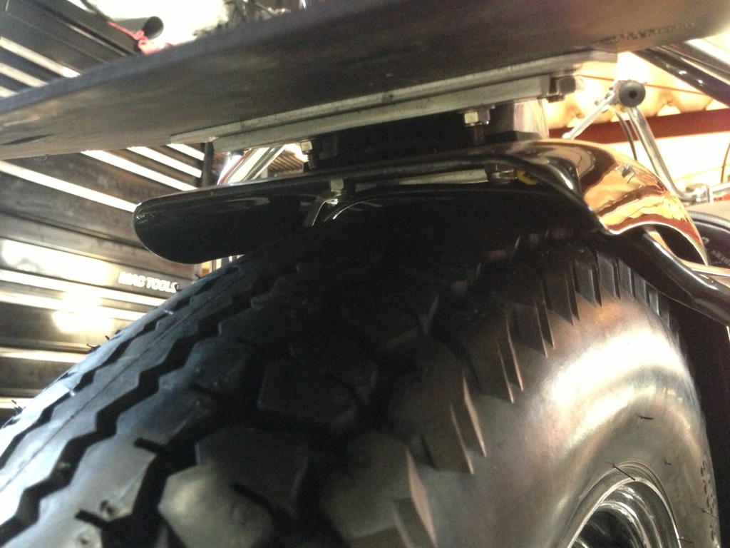 リアタイヤダンロップからエイボンに変えたらフラットフェンダーステー干渉。