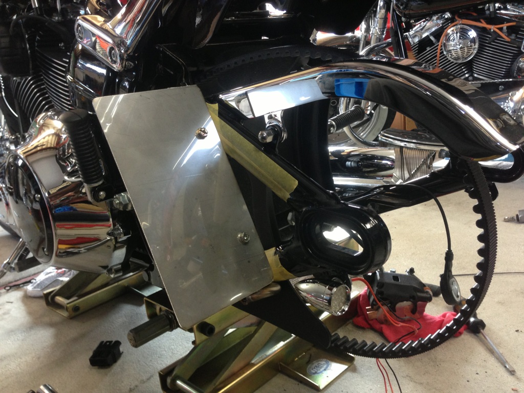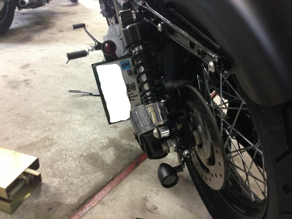 カッチョ悪いんで少しでも目立たなくスイングアームに移設。