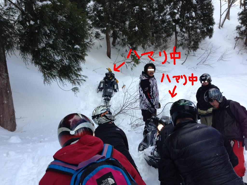 50cm以上の新雪。僕一人では助けれる訳もなくタンデムでみんなの元にヘルプ!