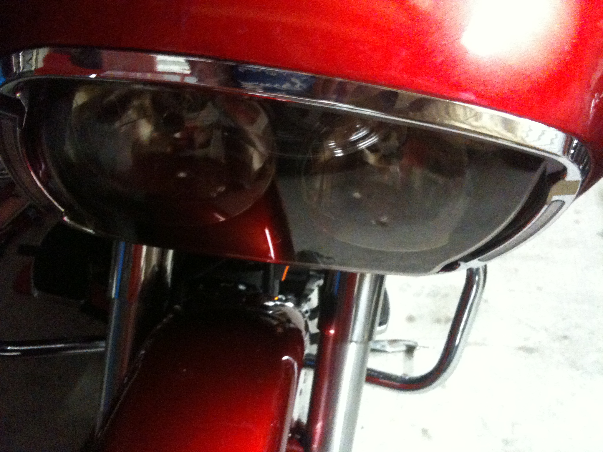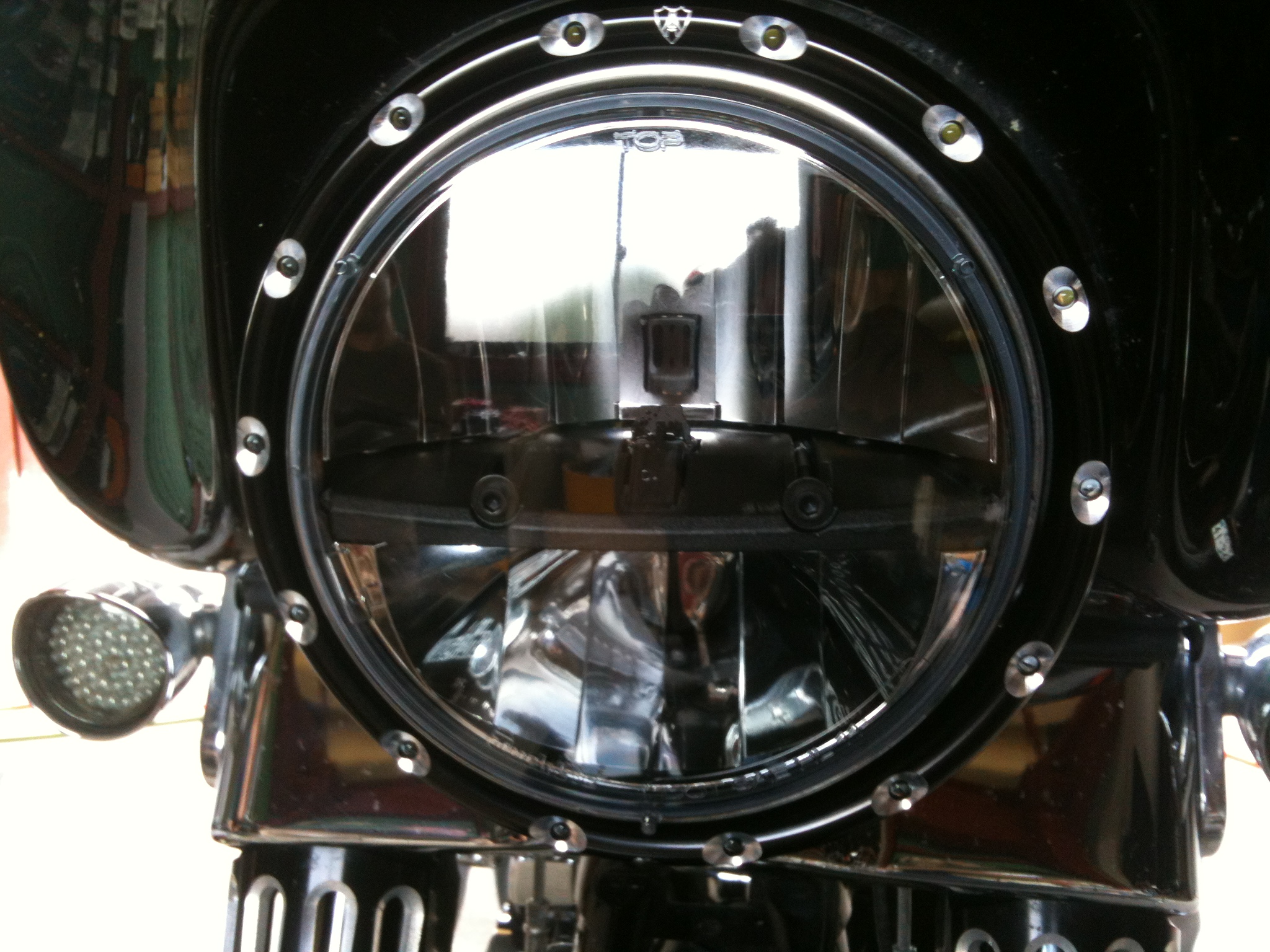スモークレンズな上にプラスチック製なもんで光軸がばらけたり、光量低下。