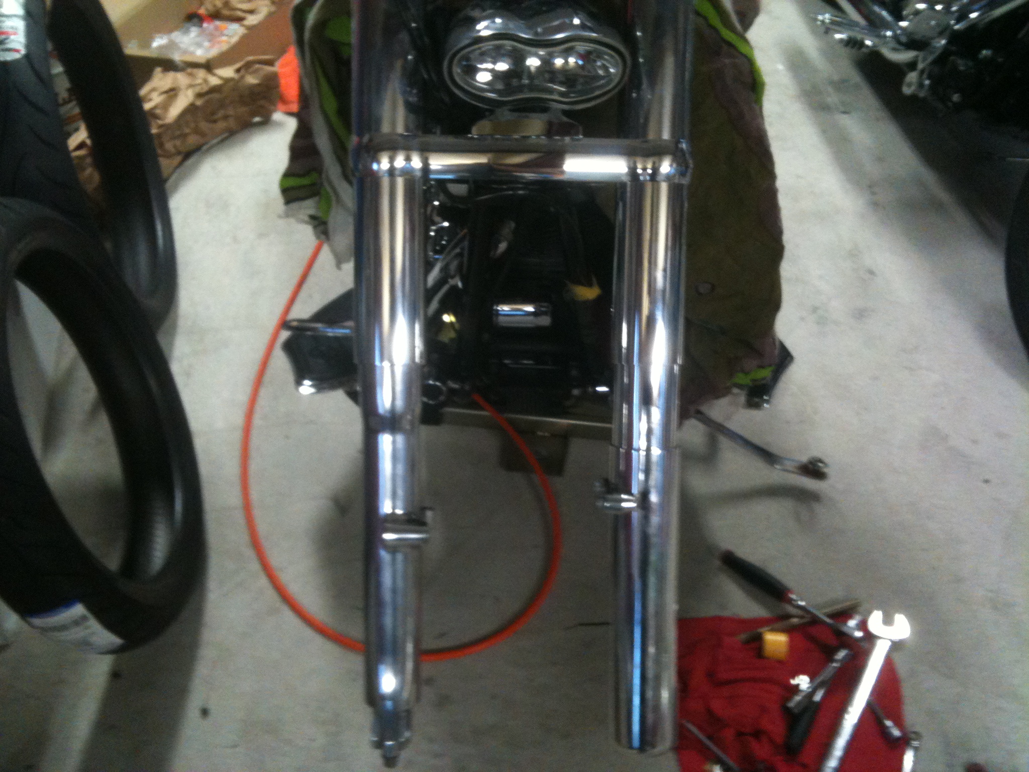 フロントフォークボトム交換。