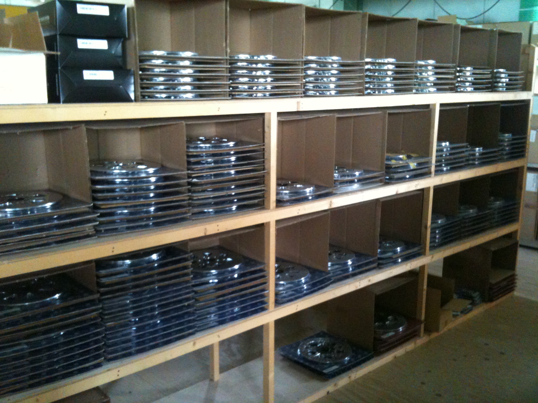 二階倉庫には在庫のPM社ホイールなどの高級品が保管されてます。
