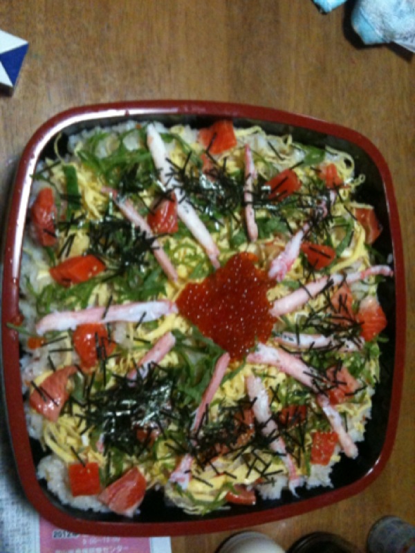 嫁の作ったチラシ寿司に私の作るたこ焼きでパーティーっす